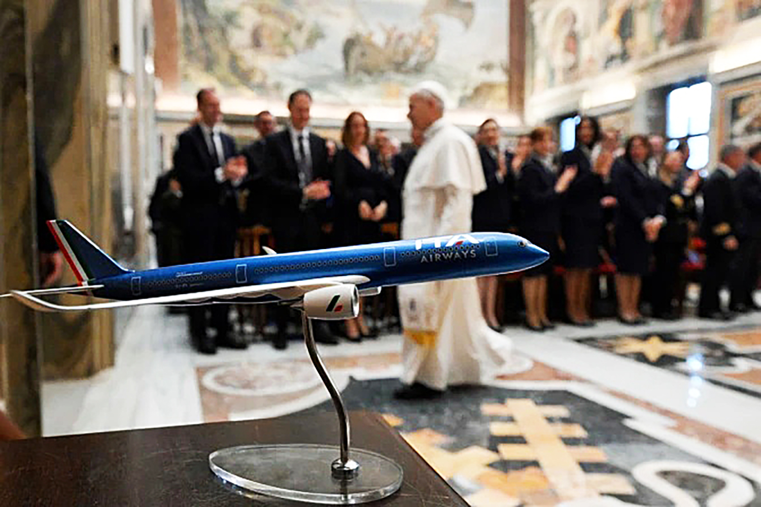 El Pontífice con los directivos y trabajadores de la compañía de bandera italiana ITA Airways | Crédito: Vatican Media